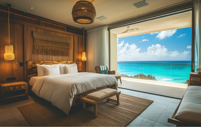 O quarto também oferece Wi-Fi gratuito, TV a cabo, frigobar abastecido e cofre eletrônico para sua segurança. Com serviço de quarto disponível 24 horas, o Quarto Deluxe Praia Dourada combina conforto, conveniência e uma pitada de luxo, ideal para uma estadia inesquecível.
